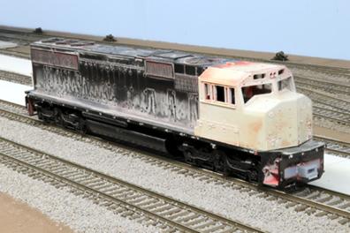 On 5-12-25 I finally dunked this to strip the paint. Scalecoat is back in business selling the plastic paint stripper and paint thinner – only. This loco was painted silver, then white and red. Stripping a plastic loco is an all day project of soaking and scrubbing until clean.